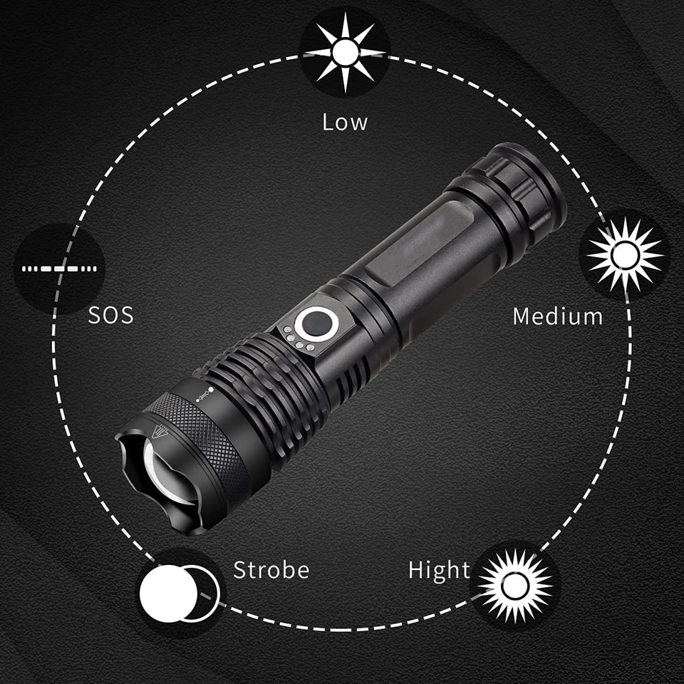 Amazing Illumination: With 90000 Lumens, Professional LED flashlight is strong and sturdy.